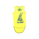 Baby yellow To the Sea wave onesie. 6-12 Months old. Made in the USA from 100% organic cotton, printed with water based inks with custom contrast stitching. Designed in Hawaii, printed in Los Angeles.